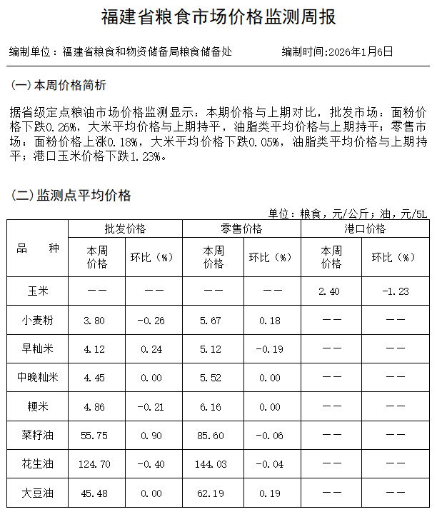 价格监测周报(2026年1月6日)