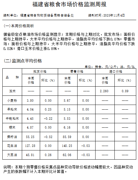 价格监测周报(2025年11月4日)